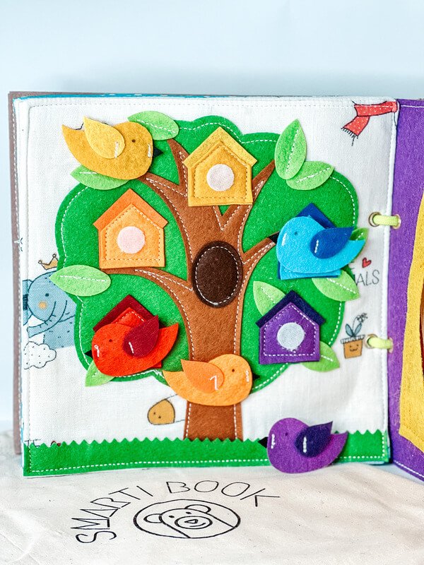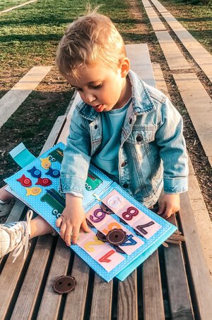 Obsahuje 9 pracovných stránok. Vhodné pre vek od 2 rokov, nakoľko dieťaťu ponúka rôzne aktivity, ktoré ho podnecujú k získavaniu nových zručností a kognitívnemu rozvoju. Medzi aktivity patrí skladačka, rôzne mentálne úlohy, zásuvné moduly, učenie sa farieb, činnosti sčítania, počítania a hľadania sekvencií, hry na roly a aktivity, kde sa učia o rôznych domácich prácach (pranie ponožiek). Tichá kniha je ručne vyrobená a pedagogicky navrhnutá. Strany sú odnímateľné, môžete ich ľubovoľne presúvať alebo ich rozdeliť medzi súrodencov.
